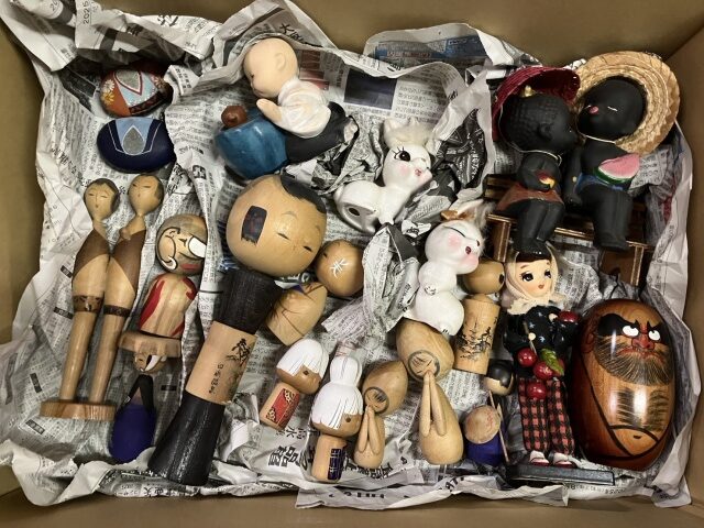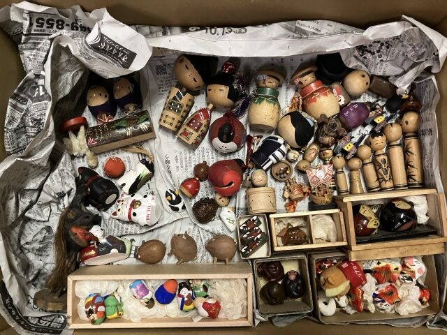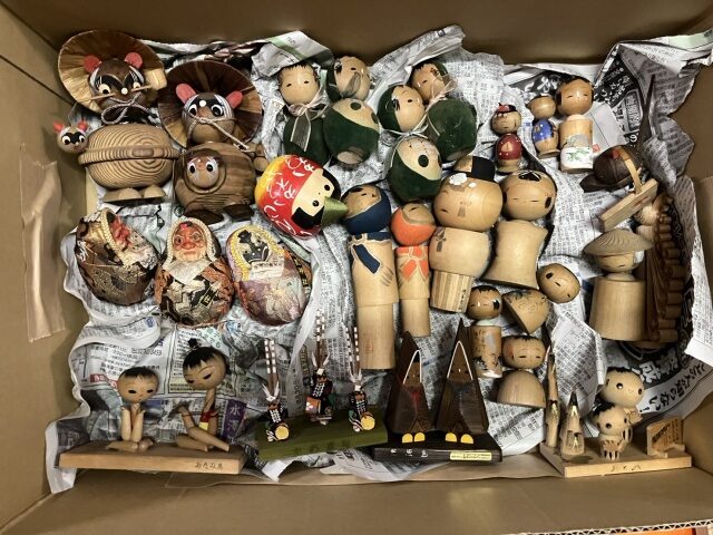 アイヌの郷土玩具を中心に、こけしや木彫りの熊、人形などを買取させていただきました!対になっているものや家族で並んでいるものが多く、とても可愛らしかったです!